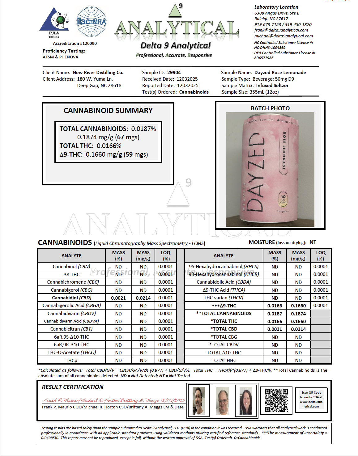 certificate of analysis